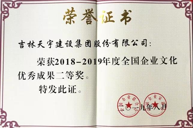中国企业联合会、中国企业家协会主办的全国企业文化年会(2019)8月5日至6日在北京召开,会议对2018-2019年度企业文化优秀成果进行了表彰,天宇集团荣获了2018-2019年度企业文化优秀成果二等奖,面对这份厚重而珍贵的表彰,我们必将更加珍惜荣誉、再接再厉,继续深入开展企业文化建设,为我国企业文化发展做出更多的贡献,为实现中华民族伟大复兴的中国梦继续努力。