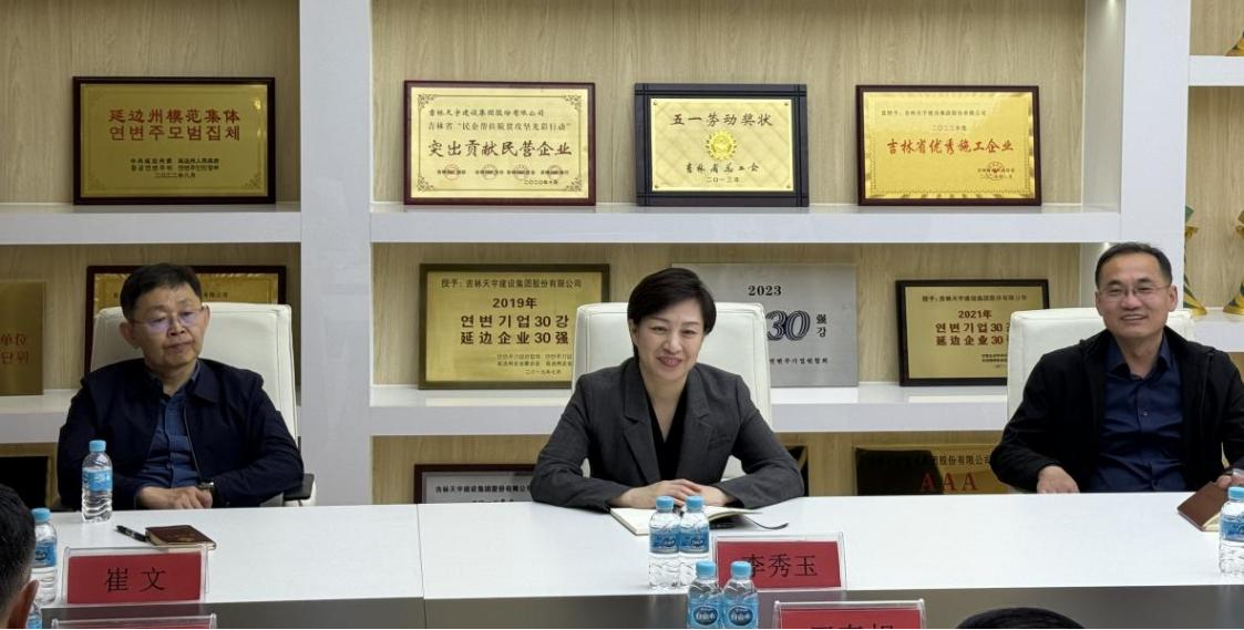 李秀玉主席充分肯定企业作为延边建筑业龙头的示范作用:"天宇集团七十余年扎根地方,在税收贡献、就业带动和推动行业发展方面成效显著,展现了民营企业的责任担当。"同时表示,州工商联将持续完善各项服务机制,始终聚焦企业实际需求,让更多惠企政策精准直达,护航企业健康发展。